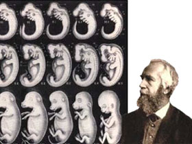 Ernst Hekel 1868-ci ildə yazdığı “Natürliche Schöpfungsgeschichte” (Təbii yaradılış tarixi) adlı kitabında insan, meymun və it rüşeymlərindən istifadə edərək bəzi müqayisələr apardığını irəli sürdü. Çəkdiyi rəsmlər bir-birləri ilə demək olar ki, tamamilə eyni canlı rüşeymlərindən ibarət idi. Hekel bu rəsmlərə əsaslanaraq sözügedən canlıların ortaq mənşədən gəldiklərini müdafiə etdi.