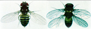 1970-ci ildə Kaliforniya Texnologiya İnstitutundan genetik Eduard B. Luis üç mutant növünü cütləşdirərək müvazinət orqanı normal olan ikinci cüt qanada çevrilən meyvə milçəyi törətməyi bacardı.